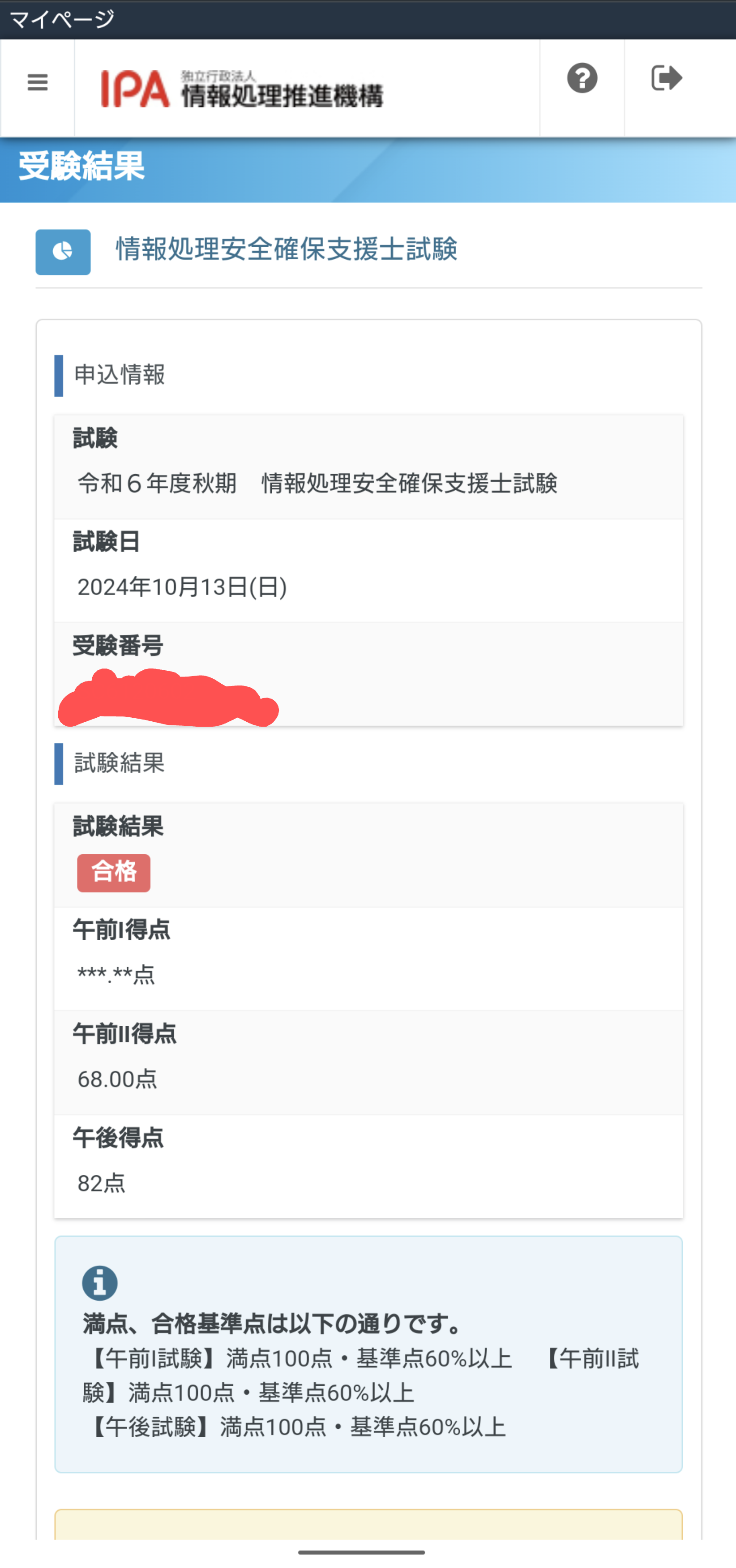 令和6年度秋の情報処理安全確保支援士に合格しました。